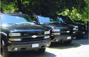 ASISS luxury suburban Z71 SUVs accommodates seating for 1-7 passengers plus luggage. It can be utilized as a mobile office and offers comfort and dependability in the worst weather conditions. Each SUV is equipped with a first aid kit, steel safe, emergency strobe light package, full limousine tint windows, and other features for the clients safety and comfort.